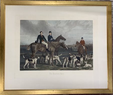 Incisione a colori inglese intitolata The Heythrop Hunt (cm 75x92) In cornice
