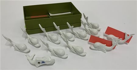 Manifattura di Richard Ginori. Gruppo di dodici segnaposto in porcellana a forma di delfini