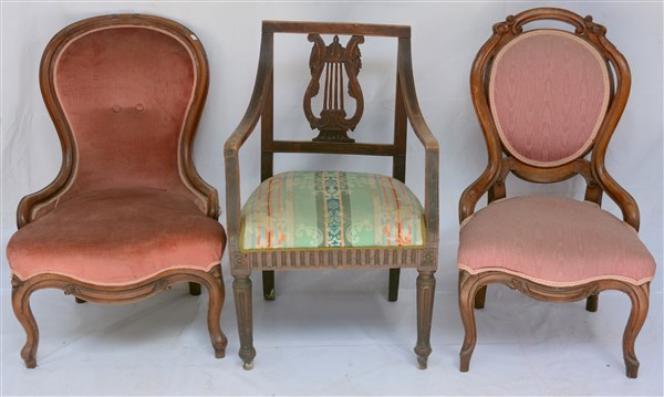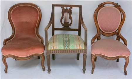 Lotto composto da una poltrona del secolo XVIII e due poltroncine del secolo XIX (difetti)