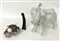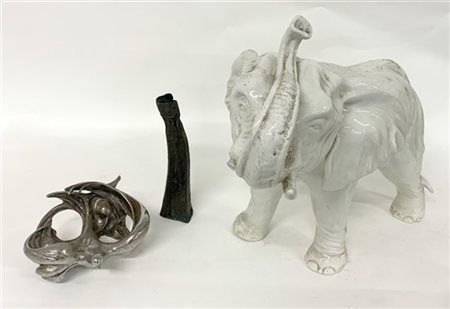 Lotto composto da una scultura raffigurante rondini, una astratta ed una raffigurante elefante in metallo e ceramica (difetti)