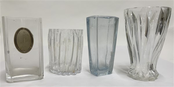 Lotto composto da quattro vasi portafiori in vetro e cristallo di diversa fattura (difetti)
