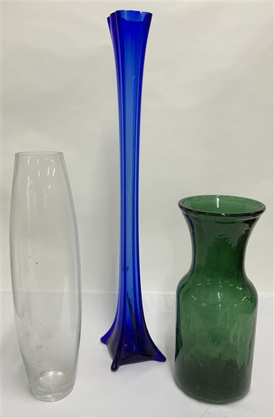 Lotto composto da tre grandi vasi portafiori in vetro di diversa forma e fattur
