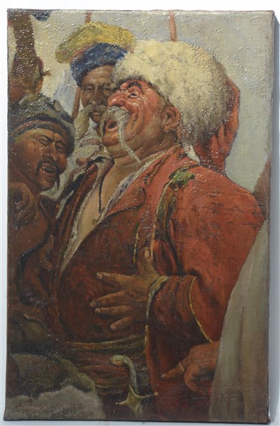 Firma indecifrata "I cosacchi" 1943, olio su tela (cm 53x34) Data e firma in basso a sinistra in cirillico