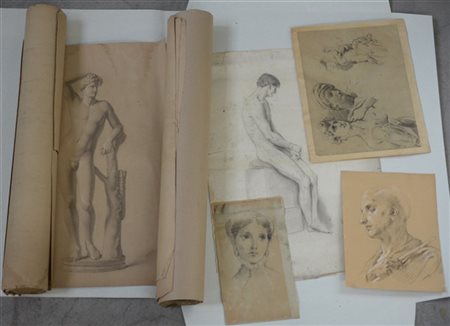 Cartella contenente numerosi disegni alcuni firmati Lodovico Pogliaghi (difetti e mancanze)