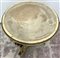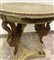 Gueridon in legno laccato e dorato, fascia intagliata a motivi vegetali, gambe