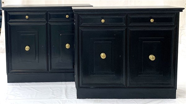 Coppia di credenze a due ante e due cassetti in legno laccato nero (cm 104x90x39) (lievi difetti)