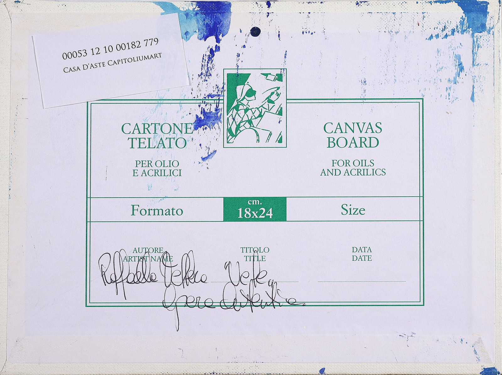 VELLERA RAFFAELLA (n. 1975) Vele. Olio su cartone telato. Cm 24x18. Autentica dell'artista su fotografia. Firma in basso a destra. Al retro titolo, tecnica e firma per autentica.