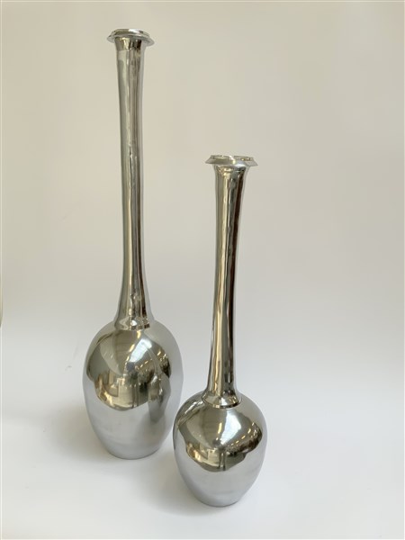 Coppia di vasi a collo stretto in fusione di alluminio. Italia, anni '90ca. (h max cm 88) (lievi difetti)