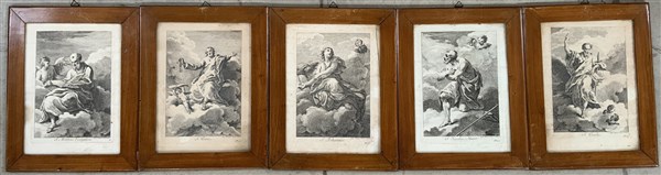 Joseph Wagner, gruppo di cinque incisioni raffiguranti santi (cm 27x20), in cornici (difetti)