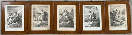 Joseph Wagner, gruppo di cinque incisioni raffiguranti santi (cm 27x20), in cor