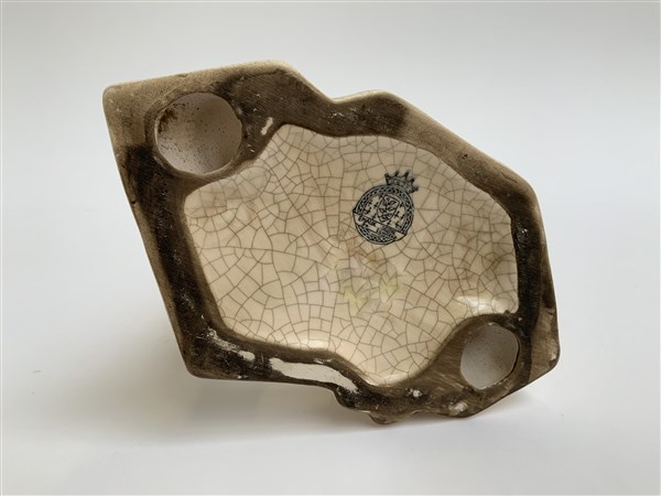 Scultura in ceramica smaltata in bianco craquele. Francia, anni '20/'30. Recante simbolo grafico della manifattura sotto la base. (h cm 31) (lievi difetti)