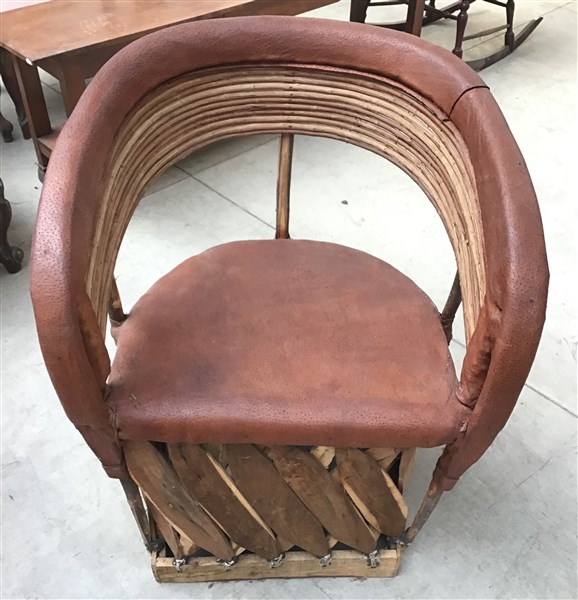 * Lotto composto da una poltrona e due sedie etniche in legnoe cuoio di diverso