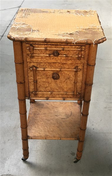 Comodino decorato a finto bamboo ad un 'anta ed un cassetto (cm 40x83x35) (difetti e mancanze)
