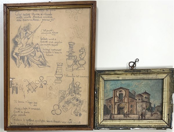 Lotto composto da una piccola veduta della chiesa di San Marco (cm 9x12,5) e un divertimento a matita raffigurante giochi e ballerine (cm 23x16) (lievi difetti)