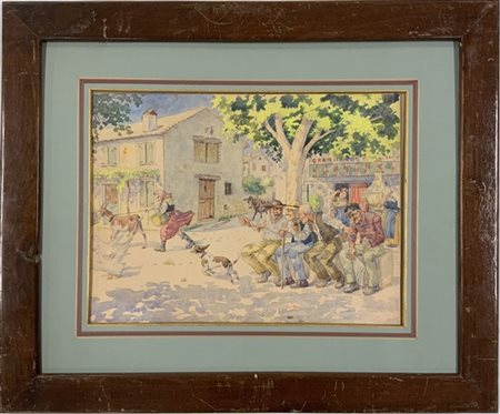 Ignoto, acquerello raffigurante scena umoristica (cm 26x35), in cornice (difetti)