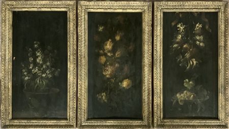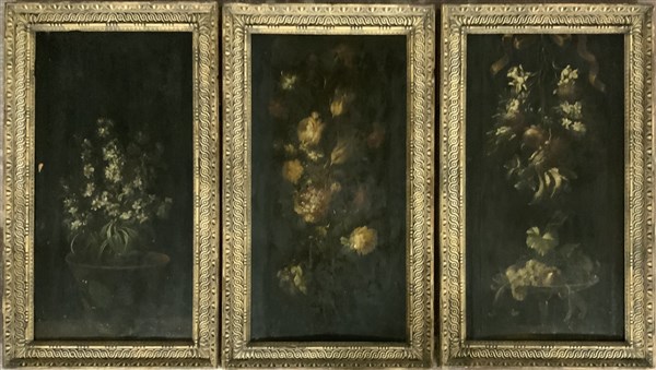Ignoto "Nature morte" tre antichi dipinti ad olio su tavola (cm 88x45) In cornici