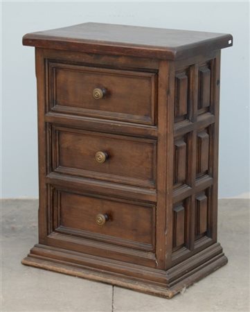 Mobiletto a tre cassetti riquadrati e fianchi pannellati (cm 60.5x83x40) (difetti)