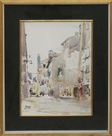 "Vecchia Chioggia" 1964, acquarello (cm 40x30) firmato, locato e datato in basso a destra. Al retro: firmato e titolato. In cornice