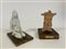 Lotto di due sculture in ceramica dipinta raffiguranti un busto maschile e un n