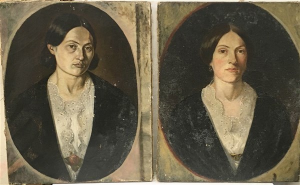 Ignoto inizio XX Secolo, coppia di ritratti femminili entro ovali, olio su tela