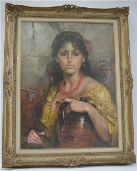 "La popolana" olio su tela (cm 80x60) Firmato in basso a destra. Al retro: cartigli. In cornice