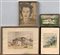Lotto di tre acquarelli raffiguranti case e paesaggio ed un disegno a matita ra
