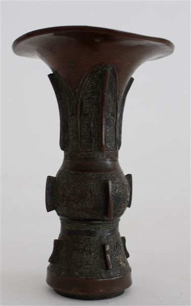Vaso in bronzo di forma arcaica "Gu" Cina, fine dinastia Qing (1644-1911) (h. c