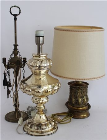 Lotto composto da una lampada fiorentina montata a luce elettrica e altre due lampade da tavolo diverse in metallo (difetti)