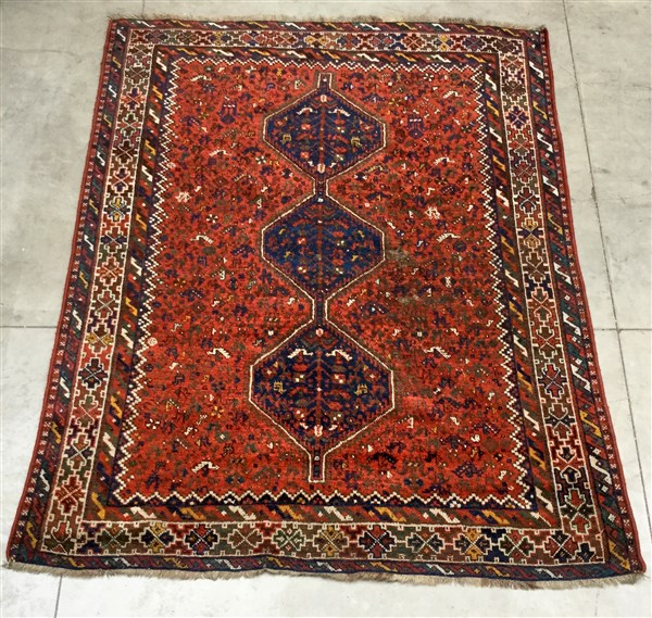 Tappeto Shiraz, Persia, inizio secolo XX. Disegno con tre medaglioni blu su fon