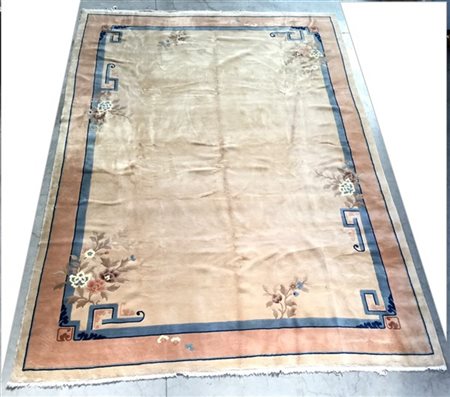 Tappeto Cina di moderna manifattura, Decoro a campo unito color camoscio, bord