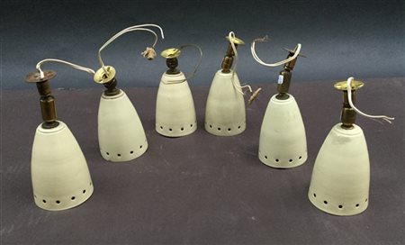 Lotto composto sei appliques con struttura in metallo verniciato beige e ottone. Italia, anni '40. (h max cm 15) (difetti)