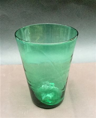 Vaso in vetro soffiato trasparente verdino. Italia, anni '70. (h cm 25,5) (lievi difetti)