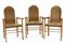 Tre sedie con struttura in legno chiaro e seduta in pelle beige. Braccioli term