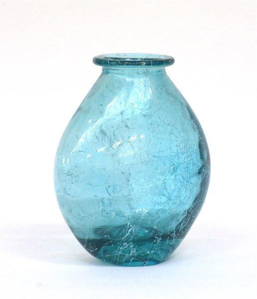 Vaso a corpo schiacciato in vetro trasparente verde acqua con applicazioni fili