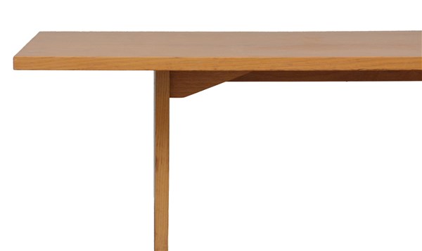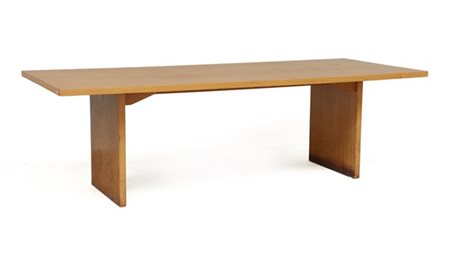 Tavolo da pranzo in legno chiaro impiallacciato. Italia, anni '70. (cm 250x75x1