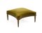 Pouff di forma sagomata in legno intagliato e laccato a fondo verde, piedi scanalati. Rivestito in velluto verde (cm 70,5x67x35) (difetti)