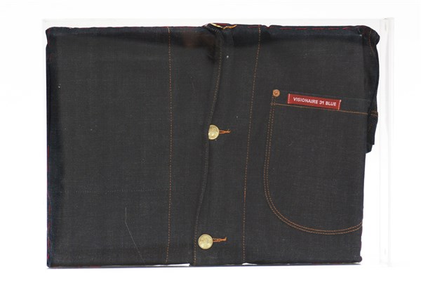 Visionaire: "31 Blue" giacca in jeans in bacheca di plexiglass