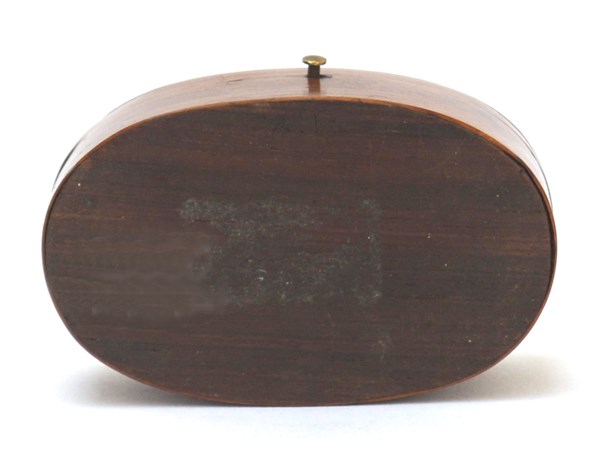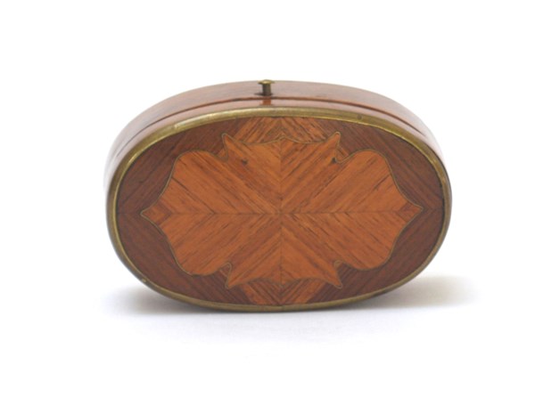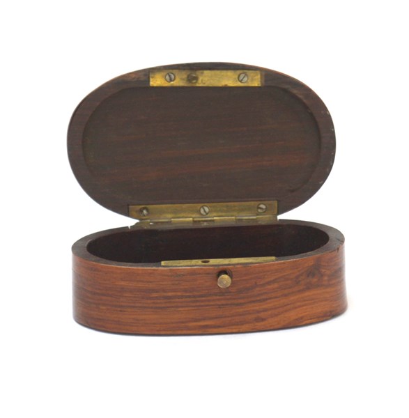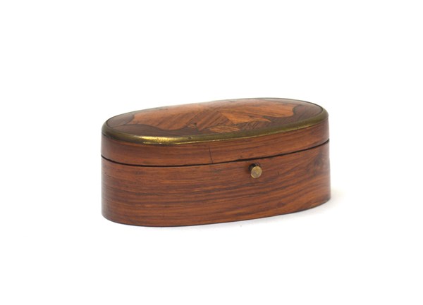 Scatolina ovale in bois de rose e ottone, secolo XIX (cm 9,8x3,7x6)