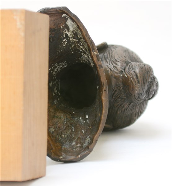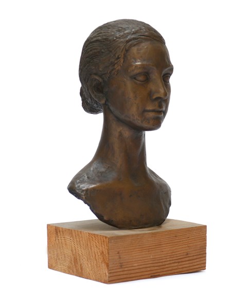 Ignoto del XX secolo "Ritratto femminile" scultura in bronzo (h cm 35) poggiante su base in legno. Monogramma GYJ al retro