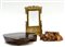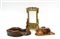 Lotto composto da un piccolo schermo da tavolo con vetro, due basi in radica di