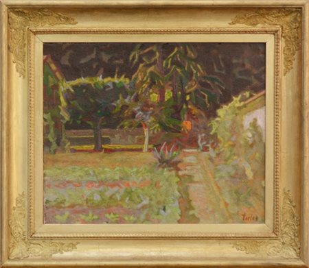 Firma indecifrata "L'orto" olio su tela (cm 46x55) Firmato in basso a destra. I