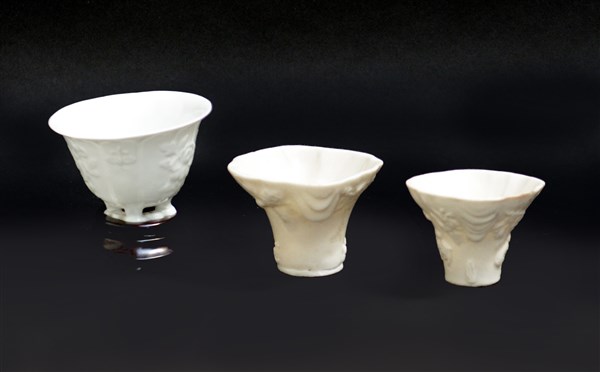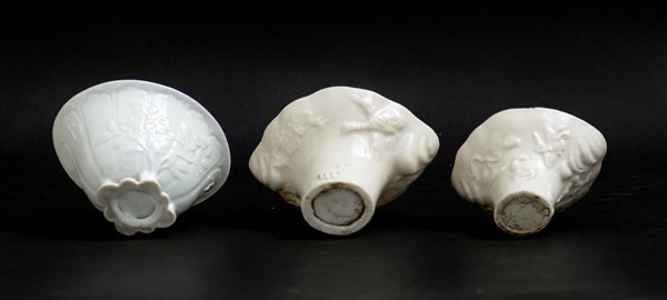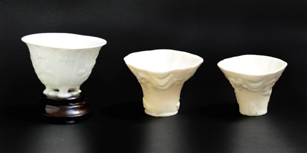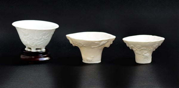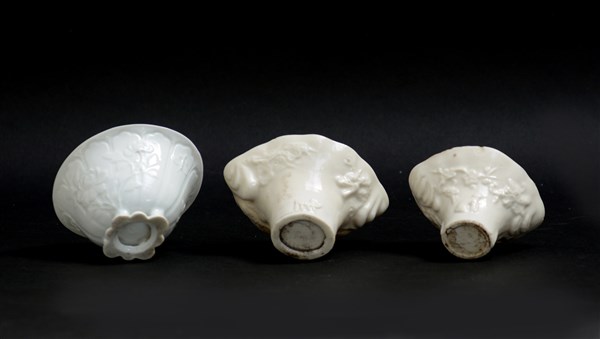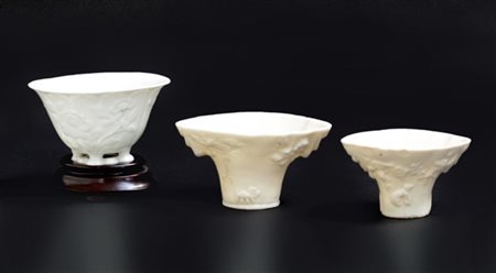 Lotto di tre coppette da libagione in porcellana bianca Cina, sec. XVIII/XIX (h
