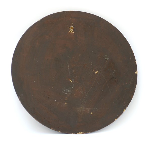 Emblema del Toson d'Oro in legno dorato su pannello tondo. Secolo XIX (d. cm 53