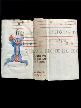 [ANTIFONARIO] Frammento di manoscritto con iniziale miniata. Italia, area venet