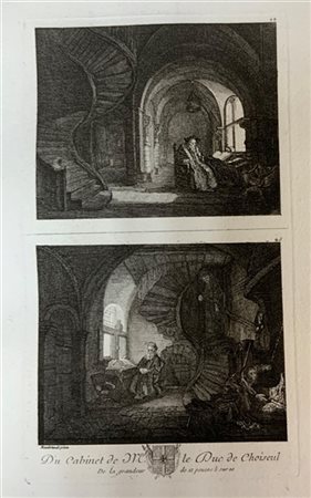BASAN, Pierre-Francois (1723-1797) - Recueil d'estampes gravees d'apres le tableaux du cabinet du Monseigneur le duc de Choiseul. Parigi: presso l'autore, 1771. Folio (330 x 225mm). Frontespizio allegorico inciso in rame, ritratto del Duca de Choiseul a piena pagina, numerose tavole numerate: 3, 5, 10-13, 16-18, 21-22, 25-26, 28-37, 40-44, 46, 51-60, 64-65, 68*, 69, 69*, 75-76, 76*, 78, 78*, 80-88, 94-101, 101*, 102-105, 108-109, 112-113, 116118, 120, 123 (alcune occasionali bruniture e fioriture). Dorso in pelle coeva, piatti in carta marmorizzata