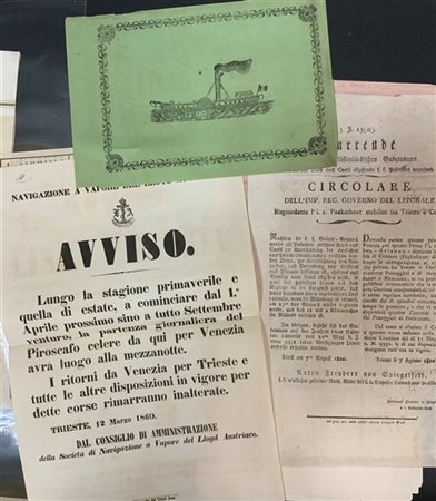[BATTELLO A VAPORE]. Lotto di opuscoli, orari e documenti relativi alla navigazione nell'Adriatico nella prima metà dell'Ottocento, sopratutto della Compagnia Lloyds