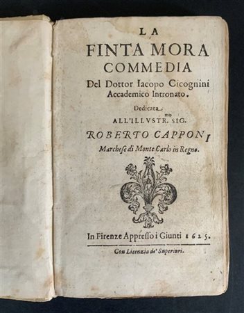 CICOGNINI Iacopo. La finta Mora Commedia. Firenze: Giunti, 1625. 8vo, legatura