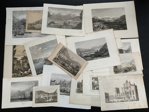 [COMO] Numerose stampe sciolte con vedute di Como fra cui alcune a colori