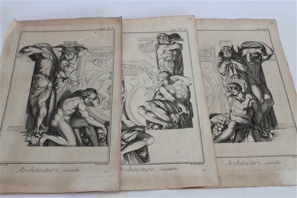 DIREX, Robert Benard (1734-1786). Tre incisoni raffiguranti motivi architettonici (400 x 260mm)