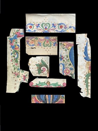 [MANOSCRITTI] Lotto di 8 frammenti di pergamena con ricche decorazioni floreali